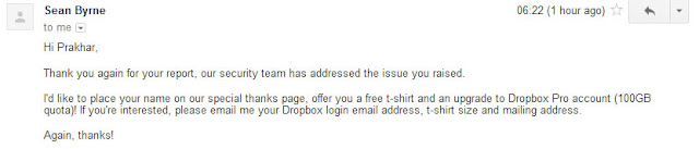 On 25th April, I discovered an unvalidated (open) redirection on Dropbox Team website from which they send emails to the Dropbox users.